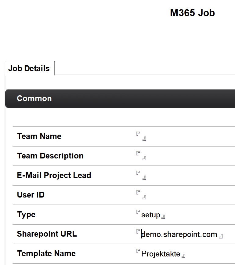 | Folder Name | Name des Ordners, der als Vorlage in ein neues Team kopiert werden soll, z.B. Projektakte |