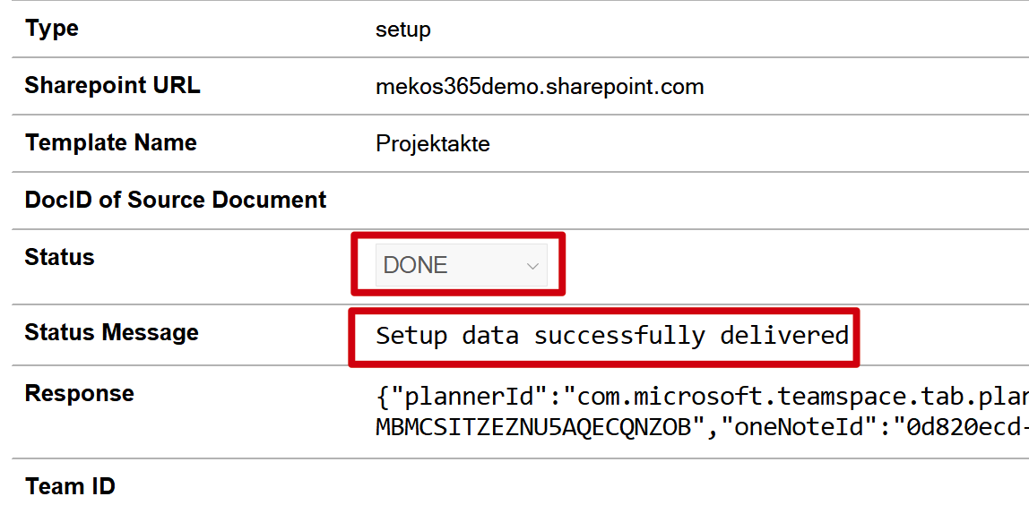| Template ID | ID des o.g. Ordners, siehe Abschnitt Ermitteln der Vorlagen ID |
