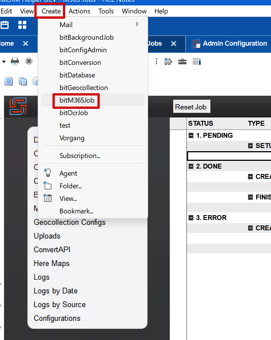 Die alternative und einfachere Methode ist die Erstellung eines M365 Jobs in der Stella Helper App. Gehen Sie dazu in der Anwenung auf Create, bitM365Job.