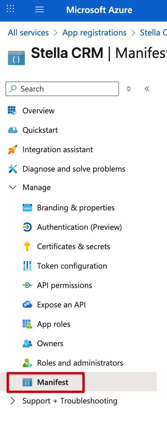 Damit die API-Berechtigungen nicht manuell gesetzt werden müssen, empfiehlt sich die Anpassung der Manifest-Datei. In den App-Einstellungen findet man die Manifest-Datei ganz unten in der Navigation: