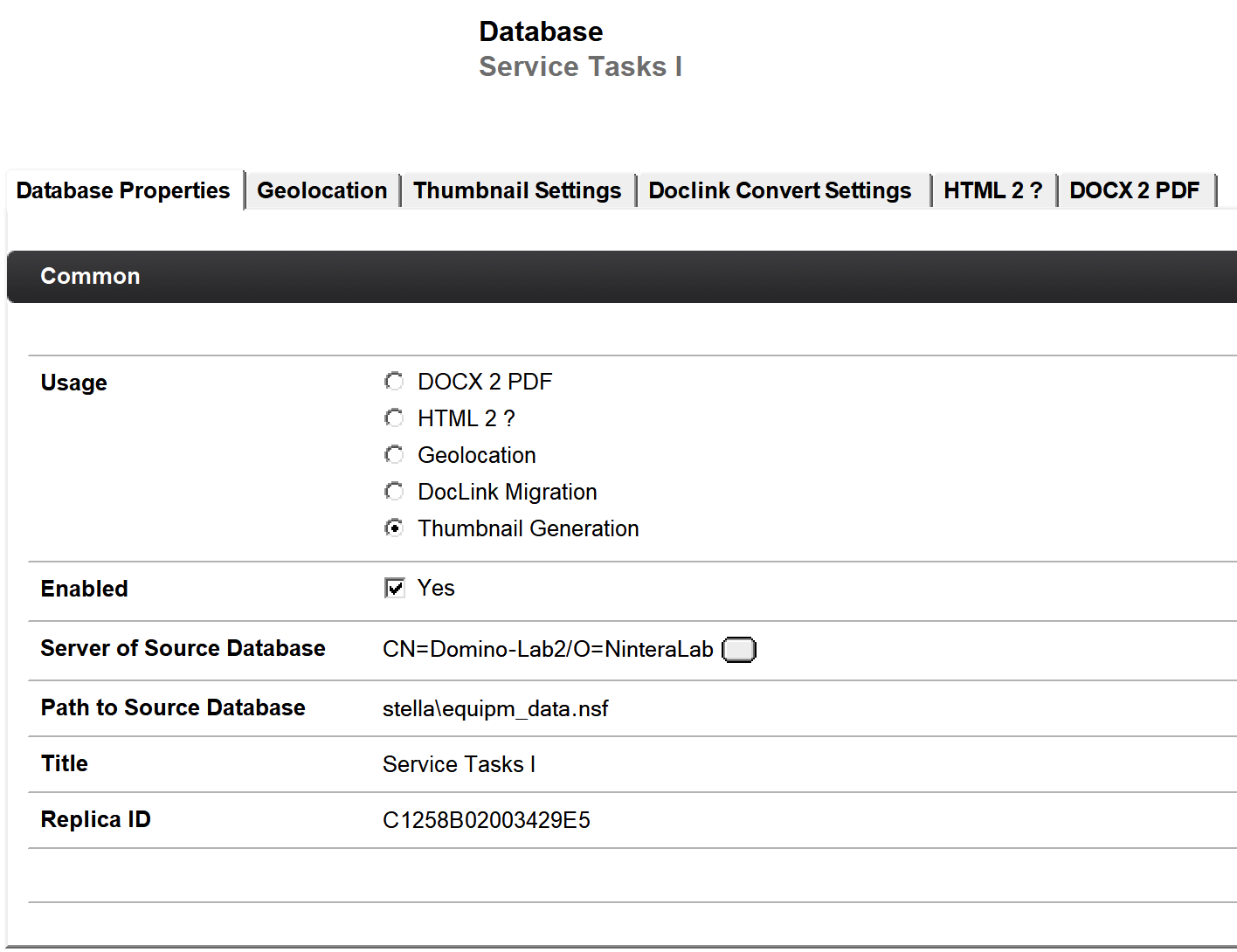 | Usage | Hier muss Thumbnail Generation gewählt werden |