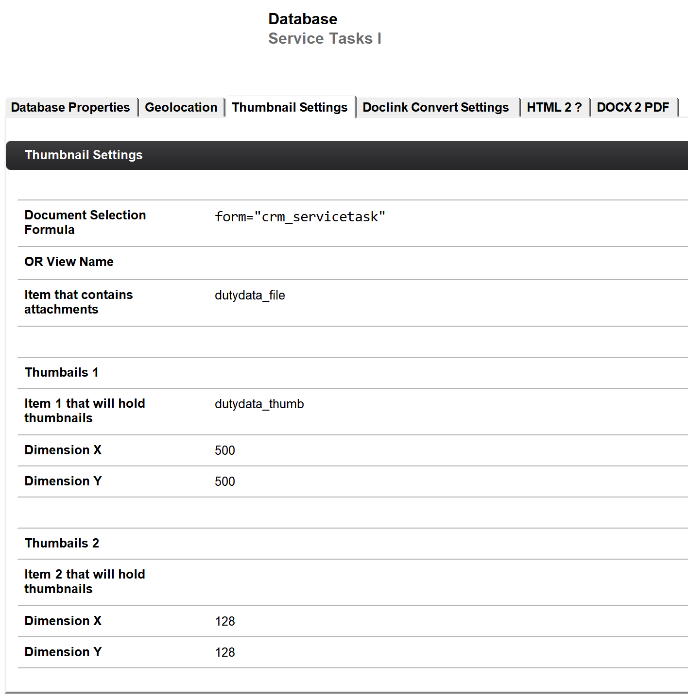 Die letzten drei Felder gibt es doppelt, so dass pro Dokument zwei verschiedene Bildquellen und Thumbnailfelder definiert werden können.