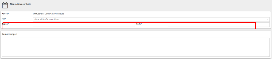 Tragen Sie dort den Zeitraum der Abwesenheit ein.