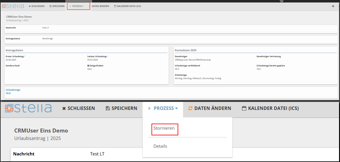 So löschen Sie einen Urlaubsantrag#