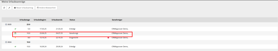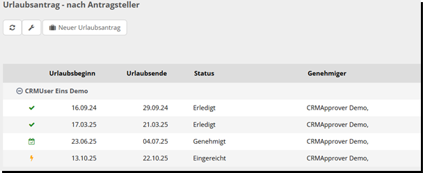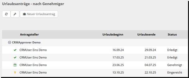 „nach Genehmiger“: hier können Sie Ihren Urlaub sehen, sortiert nach den Genehmigern.