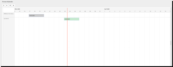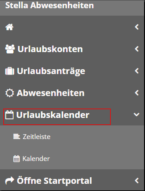 „Zeitleiste“ hier kann der Urlaub und die Abwesenheiten wie z.B. Krankheit etc. auf einem Zeitstrahl eingesehen werden.