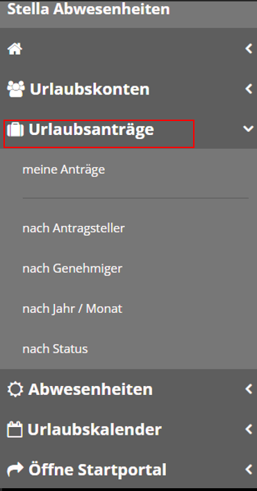 „nach Antragsteller“: hier können Sie Ihren Urlaubsanträge einsehen.