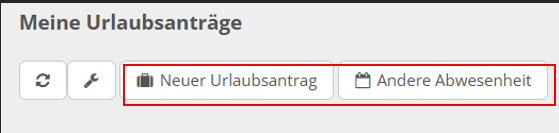 Auf der Startseite können Sie oben links direkt einen neuen Urlaubsantrag stellen oder eine andere Abwesenheit (z. B. Krankheit, Dienstreise, Fortbildung, Berufsschule) eintragen.