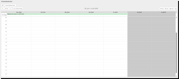 „Urlaubskalender“ hier sehen Sie den Urlaub aller User in einer übersichtlichen Kalenderansicht.